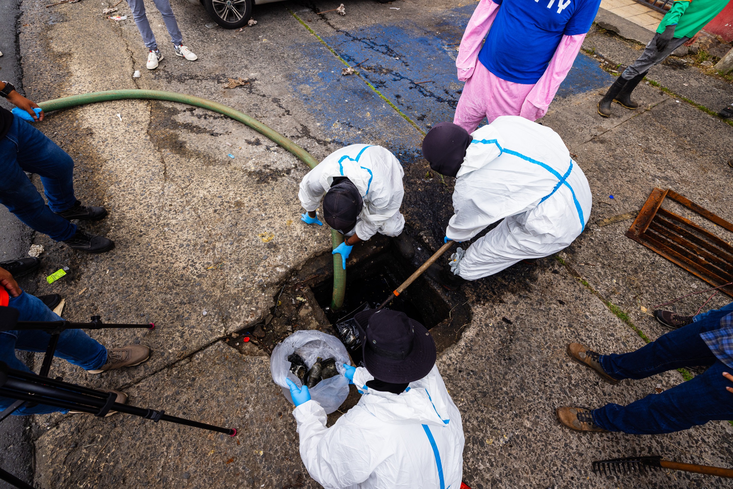 Durante la jornada, un equipo especializado en limpieza urbana en coordinación con la Junta Comunal de Juan Díaz retiró llantas de vehículos, cajas de cervezas, bolsas plásticas, caliche, pelotas y otros residuos sólidos que obstruían las alcantarillas y drenajes pluviales, ocasionando desbordes e inundaciones en la zona.