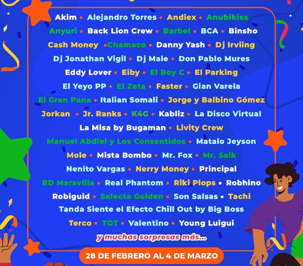 Con un cartel de lujo, el festival contará con artistas como Akim, Anyuri, Eddy Lover, Mr. Saik, RD Maravilla, Valentino y Young Luigui, junto a talentosos DJs residentes como DJ Yellow, DJ Draff, DJ Cachi y DJ Mario V.