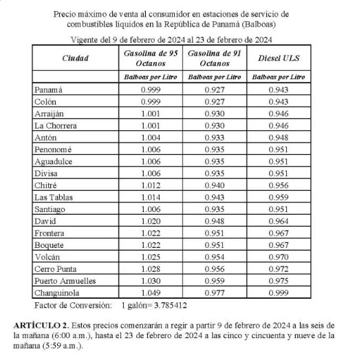 Recuerden que los precios varían, y en zonas con gran afluencia durante el carnaval, como Las Tablas, los precios por galón serán $3.84 (95 octanos), $3.57 (91 octanos), y $3.63 (diésel).