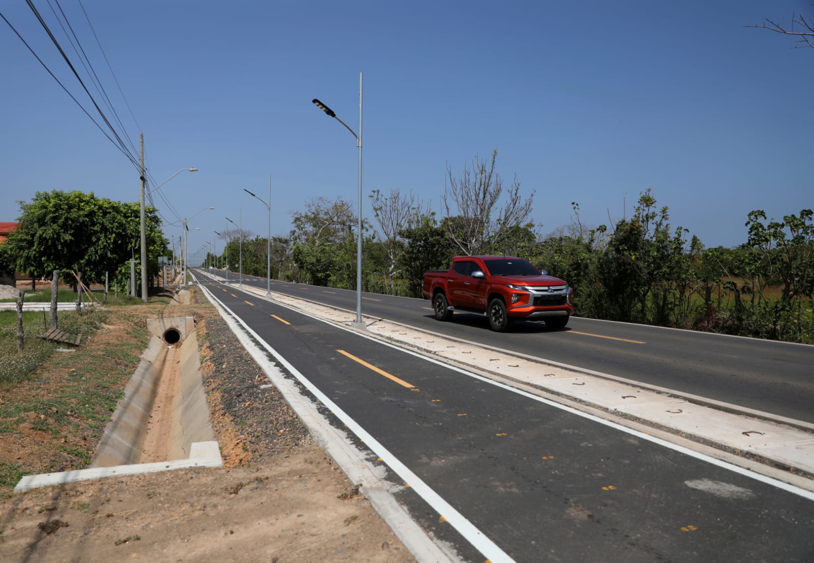 La gira de trabajo también incluyó el proyecto de Rehabilitación de la Carretera El Ejido – La Espigadilla – Tres Quebradas – Agua Buena en la provincia de Los Santos. Durante la inspección, las autoridades del MOP visitaron la nueva ciclovía con su alumbrado, que abarca una longitud de 2.50 kilómetros con un ancho de 2.80 metros.