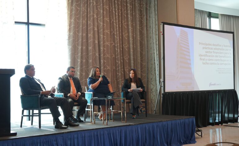 La gerente ejecutiva de Cumplimiento de Banconal, Verónica Smith de Fernández, compartió la ponencia “Principales desafíos y buenas prácticas adoptadas por el sector financiero para la identificación del beneficiario final y cómo contribuye en la lucha contra la corrupción”, enfatizando los puntos claves y los desafíos importantes que enfrenta el sector privado en la lucha contra la corrupción.