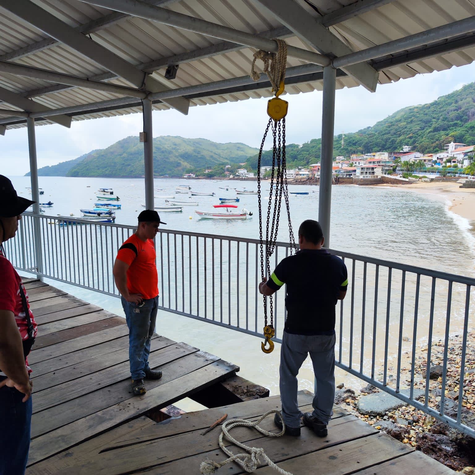 Mientras se culminan los trabajos de reparación, los embarques y desembarques se estarán efectuando en pequeñas embarcaciones en el área de la playa, hasta tanto el muelle principal sea habilitado.
