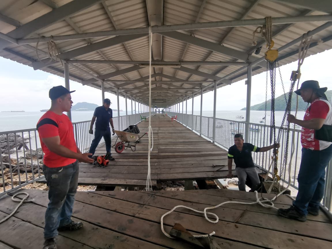 Personal de la Autoridad Marítima de Panamá (AMP) continúa en la isla de Taboga realizando reparaciones luego que parte de la estructura del muelle próximo a tierra se viera afectado por las máximas mareas registradas en el Pacífico panameño.