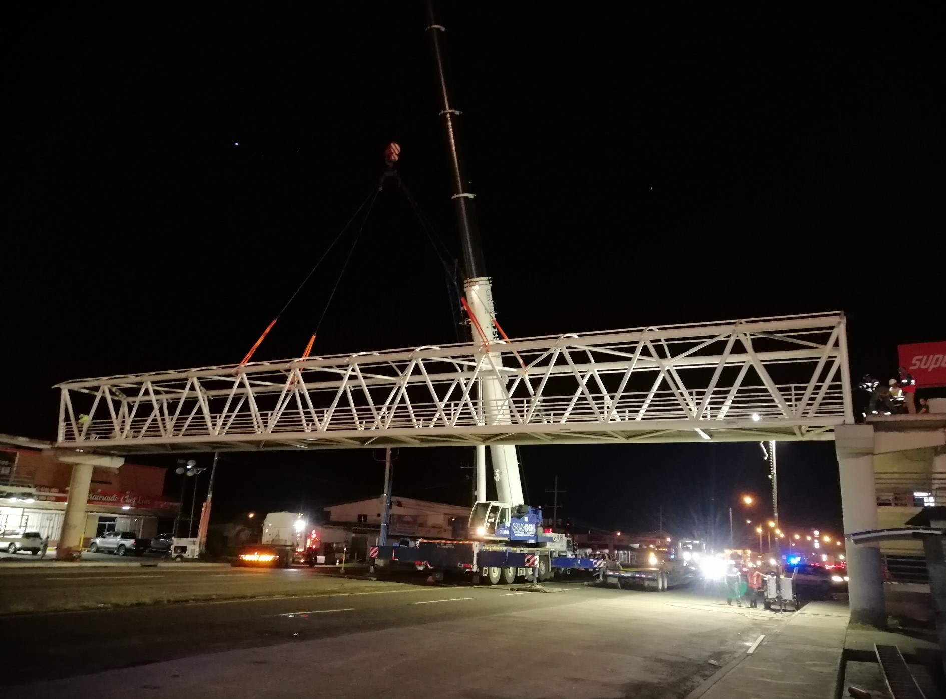 El Ministerio de Obras Públicas logró con éxito la operación de izaje de la cercha metálica del puente peatonal ubicado en la vía Interamericana en Penonomé, frente a la Plaza Iguana.