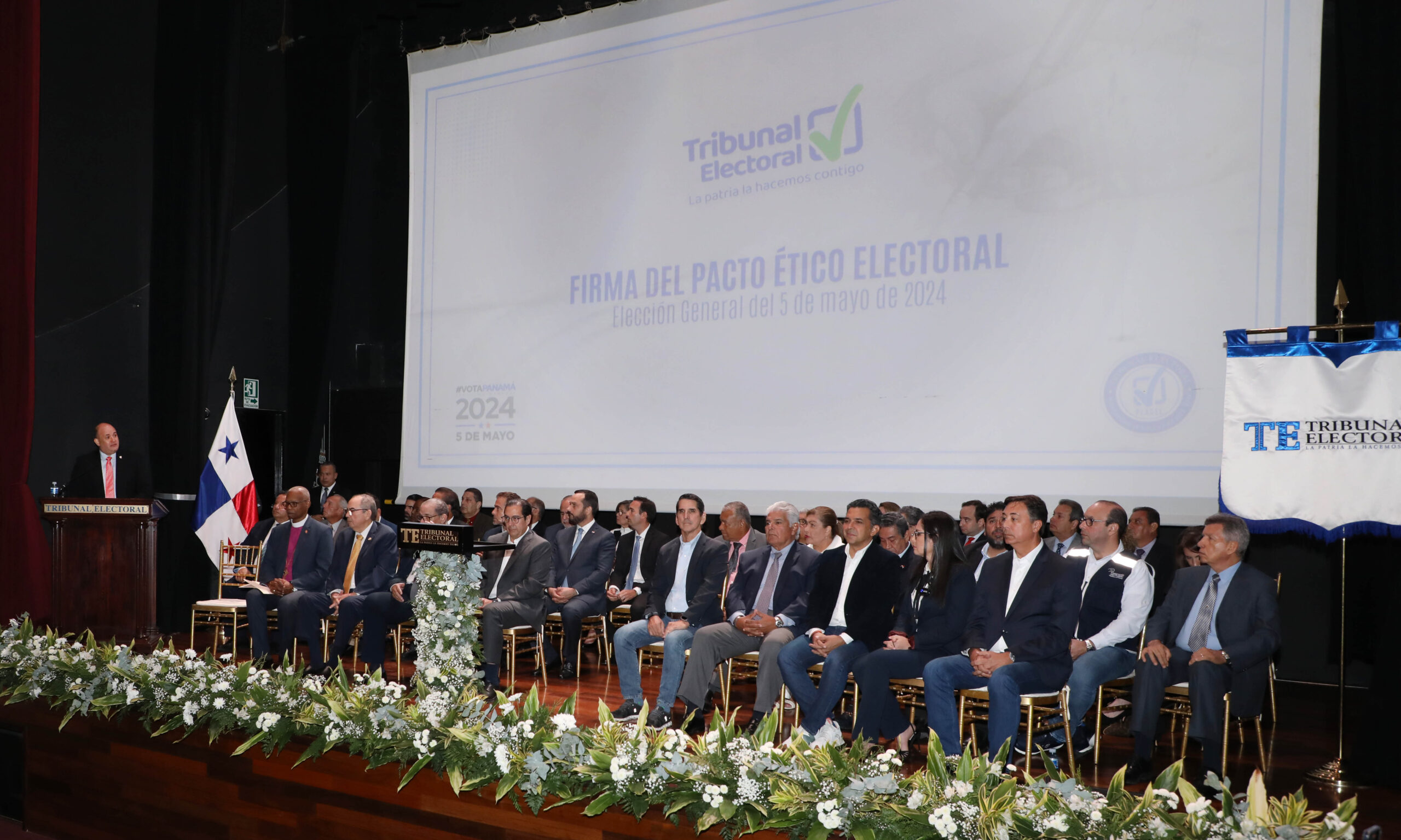 Autoridades del Tribunal Electoral (TE), el Comité Ecuménico de Panamá, representantes de los partidos políticos, candidatos a la presidencia de la República, medios de comunicación social, gremios periodísticos y otros actores de la sociedad civil organizada suscribieron este lunes 15 de enero de 2024 el Pacto Ético Electoral, con el que se busca desarrollar un torneo electoral libre, justo, respetuoso, participativo y competitivo, con apego a las normas constitucionales y electorales vigentes.