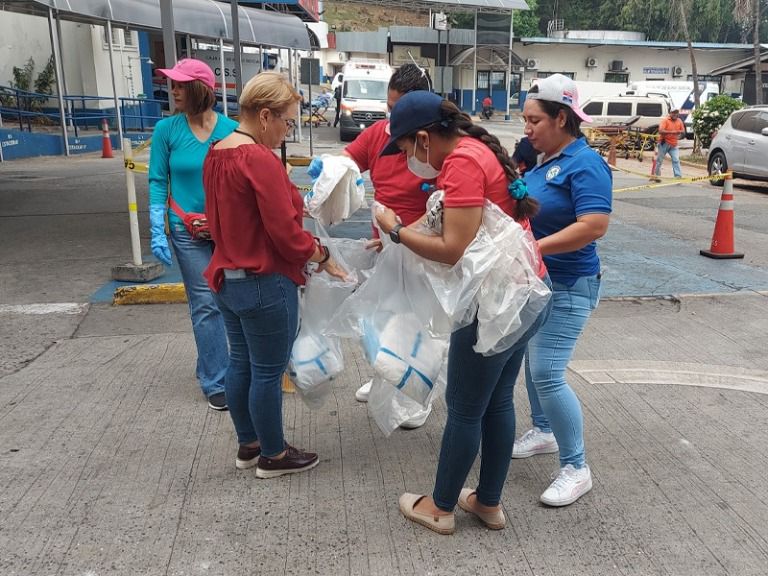 Autoridades de la Caja de Seguro Social, en colaboración con estudiantes de maestría de Salud Pública, Salud Ocupacional, Tecnología Médica y Técnicos de Urgencias Médicas de la Universidad de Panamá realizaron este sábado una jornada de limpieza de las áreas internas y externas del Complejo Hospitalario “Dr. Arnulfo Arias Madrid”.
