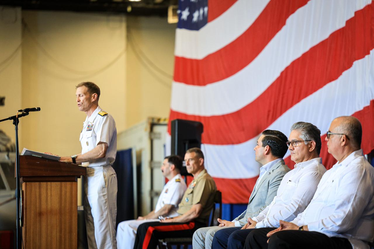 Reconoció la dedicación, disciplina y profesionalismo de cada uno de los hombres y mujeres que sirven a bordo de la nave. Comentó que su labor fortalece la seguridad a la vez que inspira confianza y reafirma la importancia del trabajo conjunto entre aliados.
