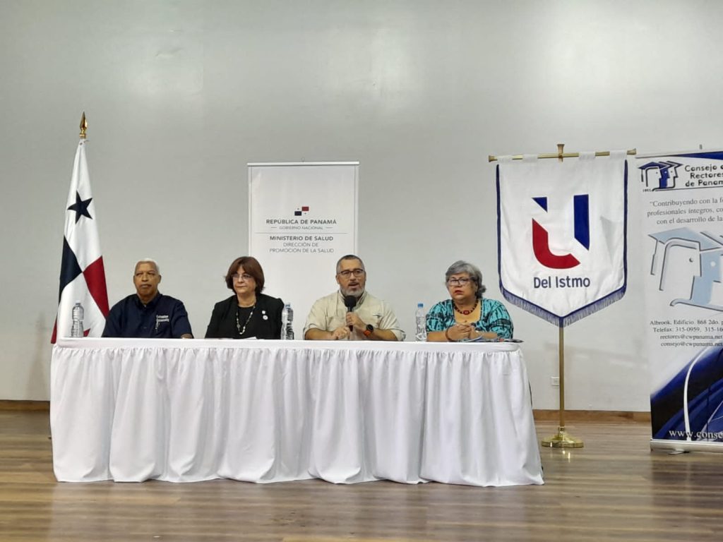 Estuvieron presentes en la mesa principal Gabriela Salazar, directora de Promoción de la Salud del Ministerio de Salud, secretaria del Consejo de Rectores de Panamá Mariángel Gálvez, decano de la Universidad del Istmo Arturo Rebollón y el coordinador de la Red de Universidades Promotoras de Salud Raúl López.