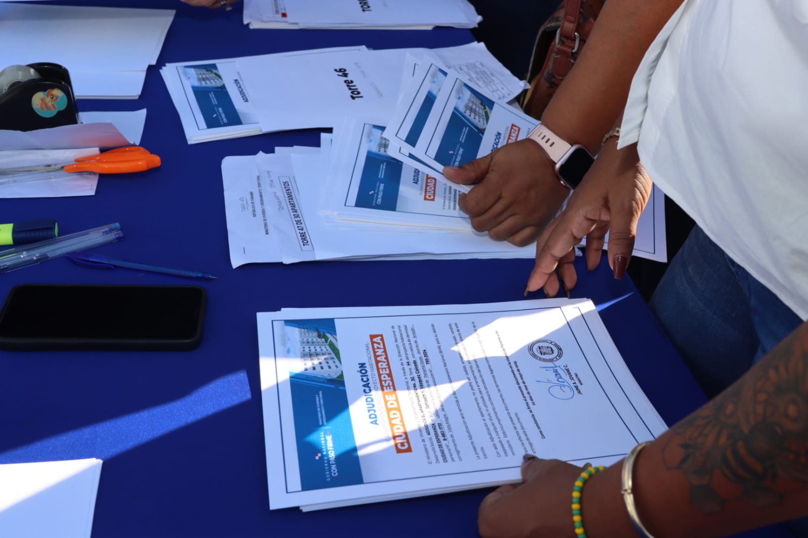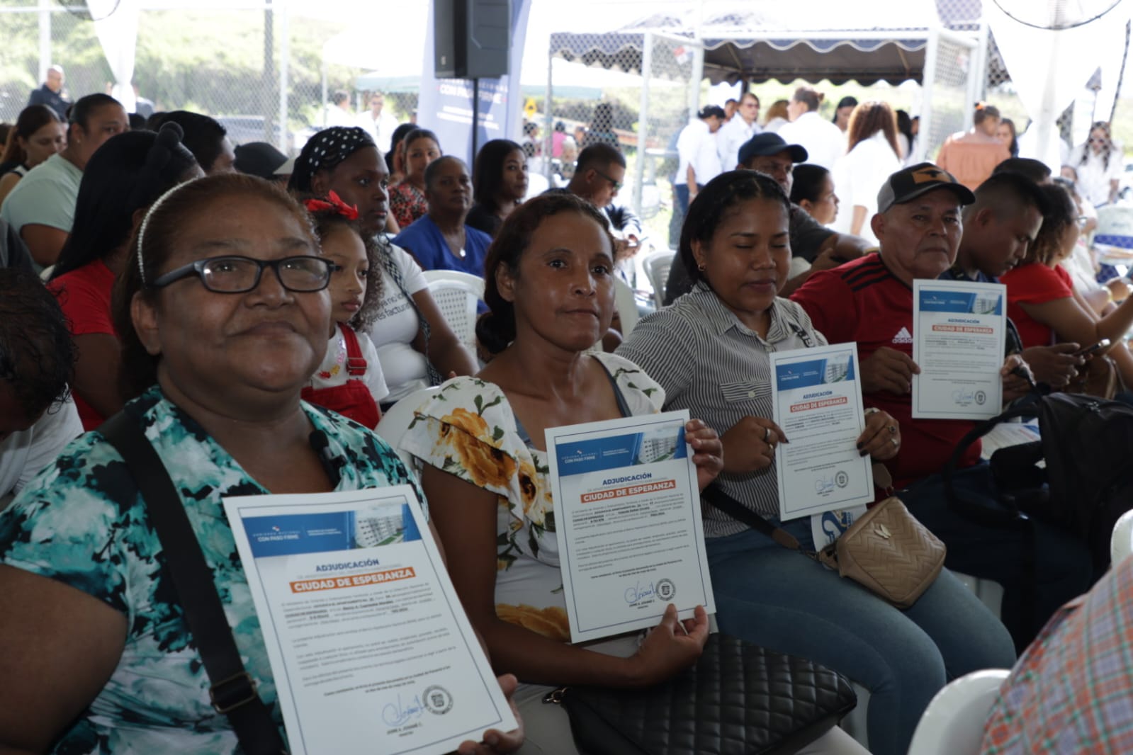 “Fueron muchos años de espera, pero valió la pena, porque ahora contamos con una casa propia y segura, donde veremos crecer a nuestros hijos y nuestra calidad de vida mejorará”, fue el sentir de las 141 familias que hoy recibieron las llaves y certificados de sus nuevos apartamentos del proyecto urbanístico Ciudad de Esperanza, ubicado en el corregimiento de Vacamonte, distrito de Arraiján, provincia de Panamá Oeste.