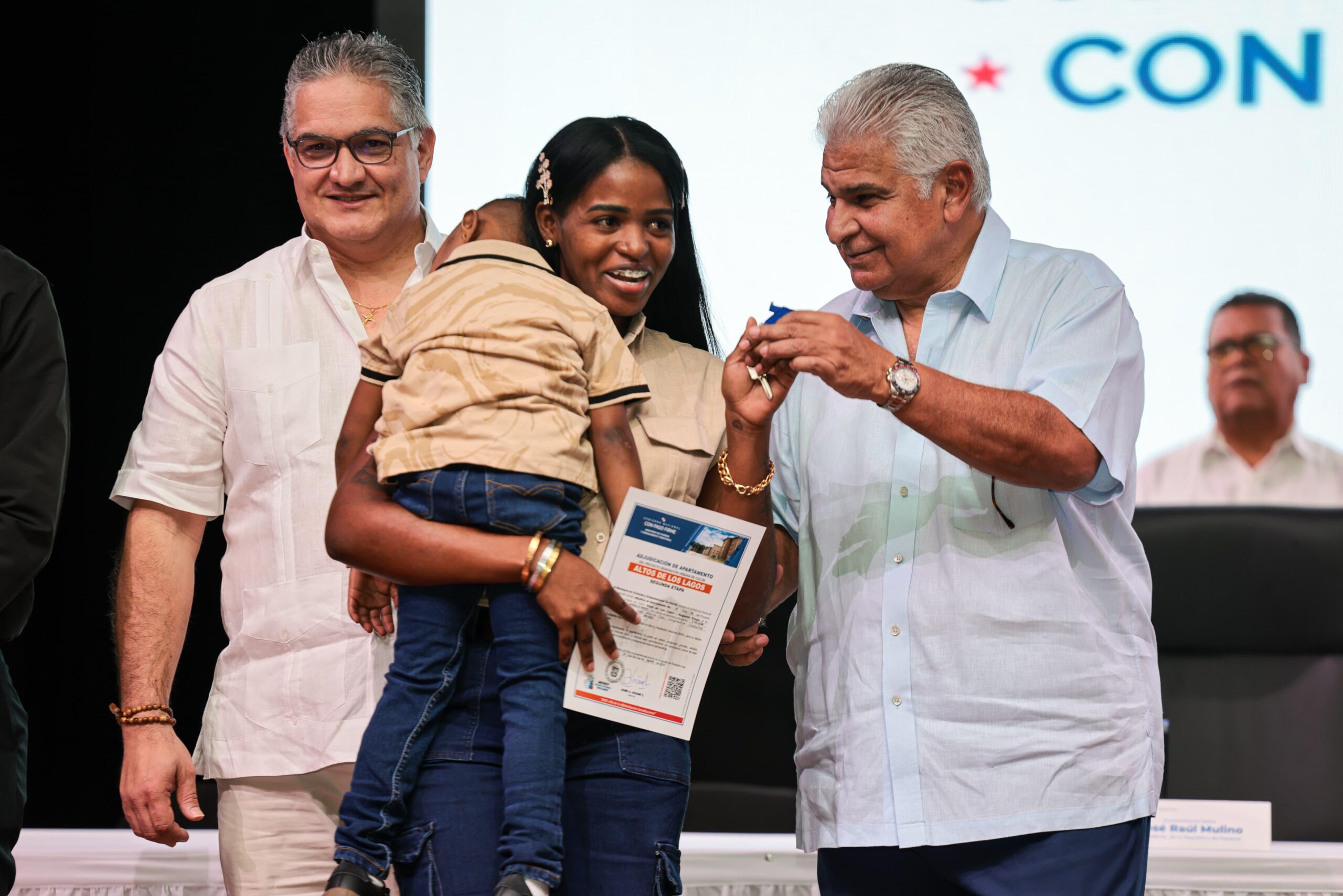 El presidente de la República, José Raúl Mulino, entregó este viernes 540 apartamentos de la segunda etapa del complejo habitacional Alto de Los Lagos, en la provincia de Colón, con lo que se benefician más de 2 mil personas que estaban viviendo en albergues y caserones en mal estado.