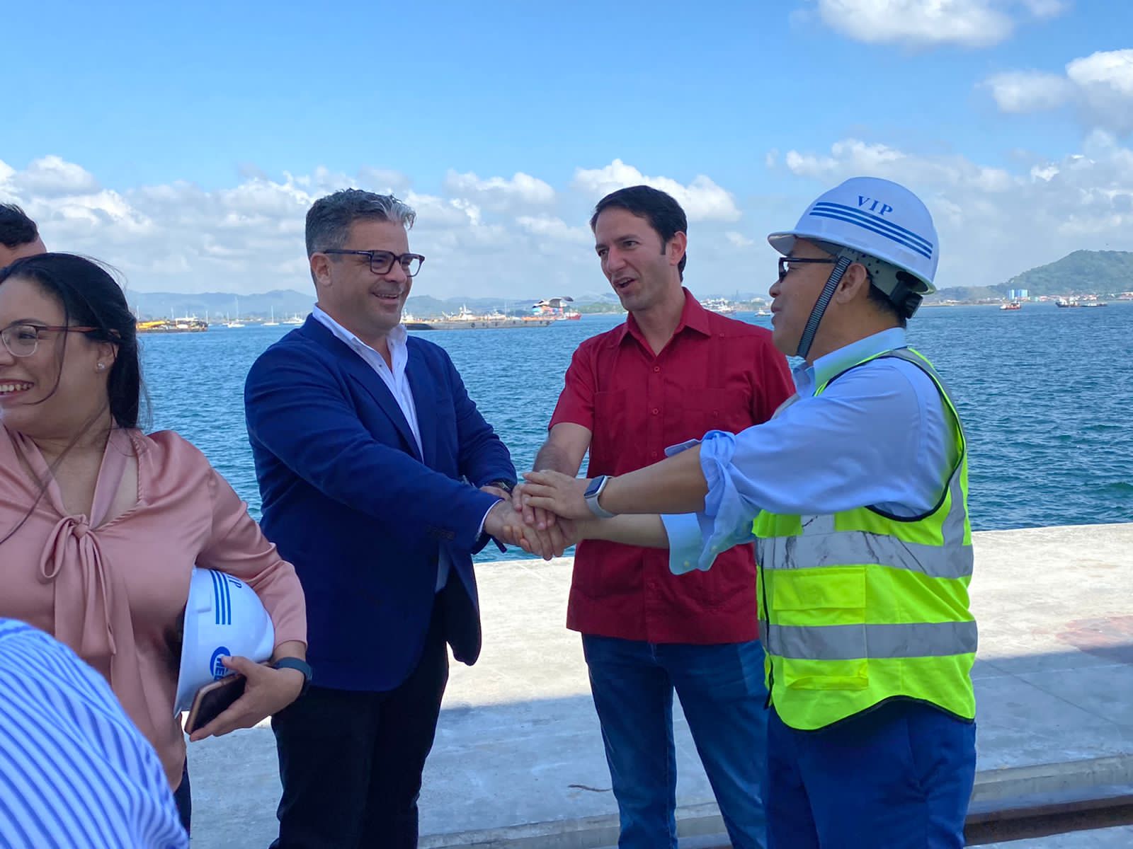 En la visita estuvieron Angelo Impoco, de Norwegian Cruise Line, representantes de la Autoridad Marítima de Panamá, empresarios de Colón 2000 (operador del puerto) y miembros de la empresa contratista, China Harbour Engineering Company.