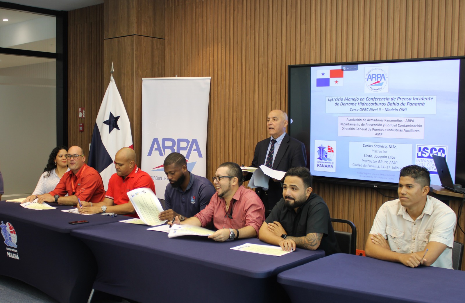 Las declaraciones del capitán Sagrera se dieron durante el curso “Modelo OMI de Entrenamiento sobre Preparación y Respuesta ante Derrames de Hidrocarburos (OPRC) Nivel 2”. El curso está dirigido a inspectores, supervisores y comandantes de escena de la Asociación de Armadores Panameños (ARPA) y del Departamento de Control y Eliminación de Contaminación de la AMP.