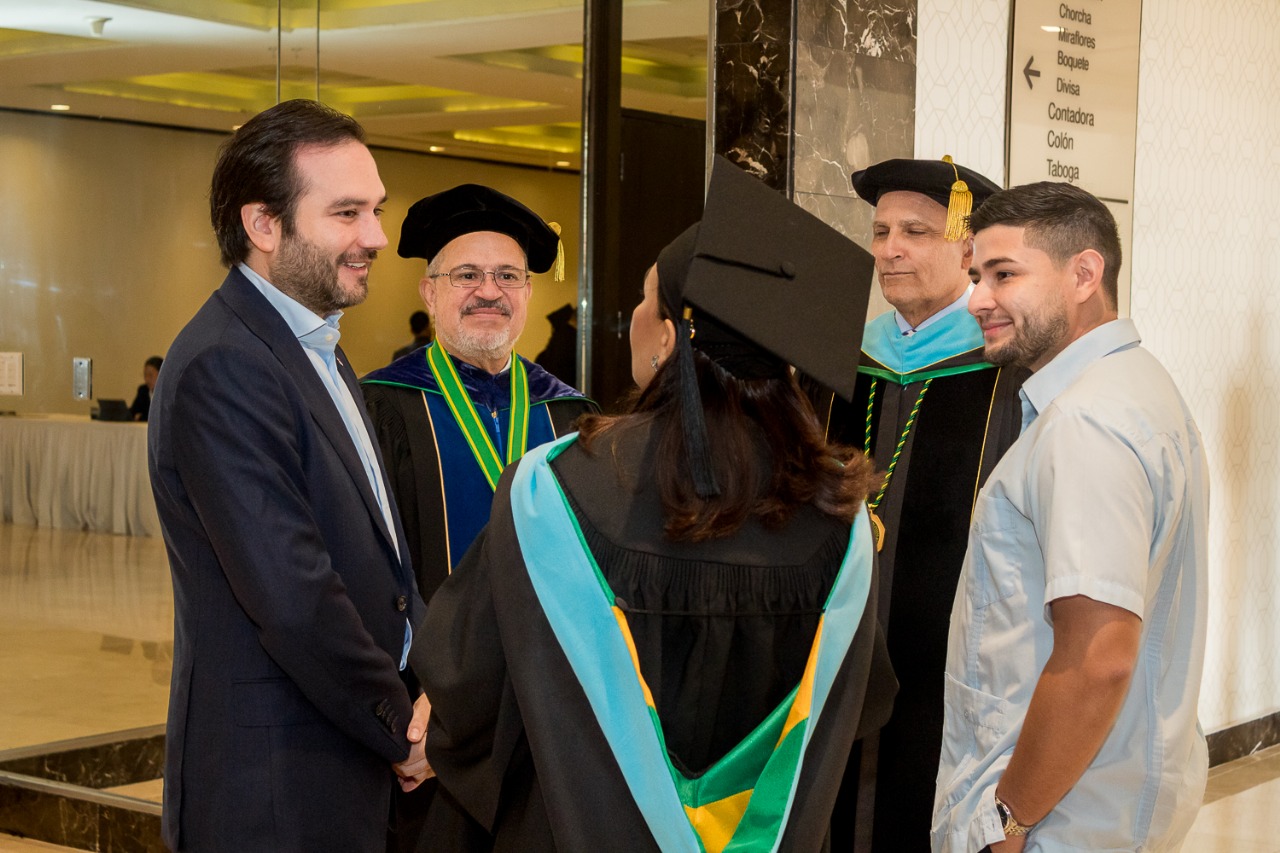 El compromiso institucional con la innovación también tuvo un espacio protagónico. El presidente de la Universidad otorgó un reconocimiento especial a dos jóvenes emprendedores finalistas en la competencia Inter Tiger Venture, en la que la sede de Panamá participó por segundo año consecutivo. Los estudiantes destacados fueron el graduado Abdiel Wong, con su proyecto Skills Scrub y Jeremy Castillo, con su iniciativa Edutalent.