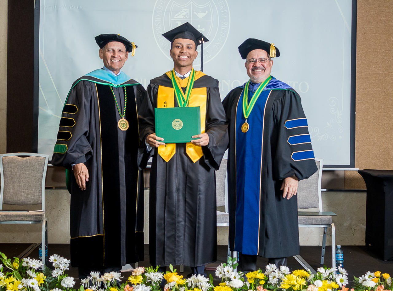Uno de los momentos destacados fue el reconocimiento al estudiante Abdiel Baldonedo, quien obtuvo el honor de Summa Cum Laude y fue distinguido como miembro del Programa de Honor, ostentando además el más alto índice académico de la carrera de Diseño y Desarrollo de Videojuegos del Recinto de Bayamón.