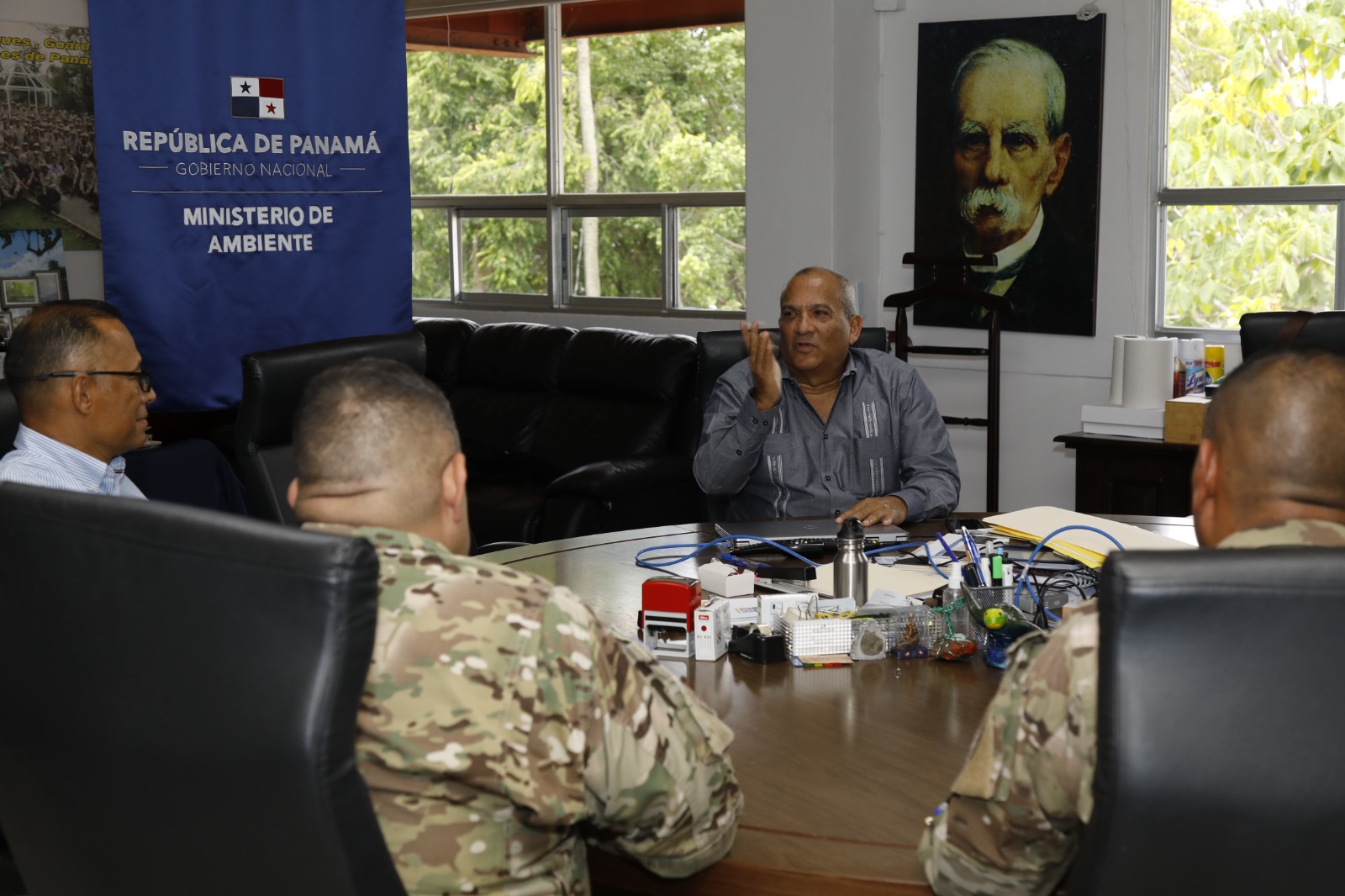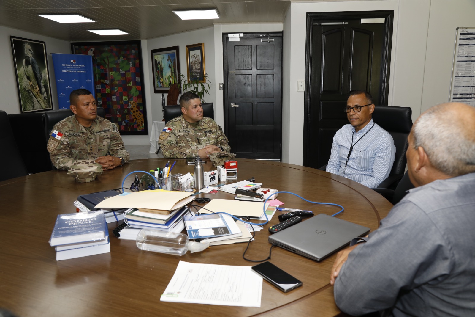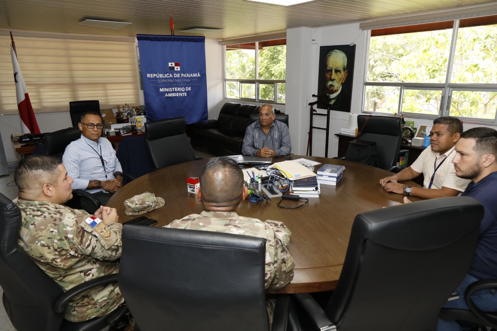 Con el afán de reforzar los lazos interinstitucionales, se realizó una reunión entre el ministro de Ambiente Milciades Concepción y el sub comisionado Luis Rodríguez, asignado como representante del Ministerio de Seguridad en el Centro de Monitoreo de Pesca Ilícita.
